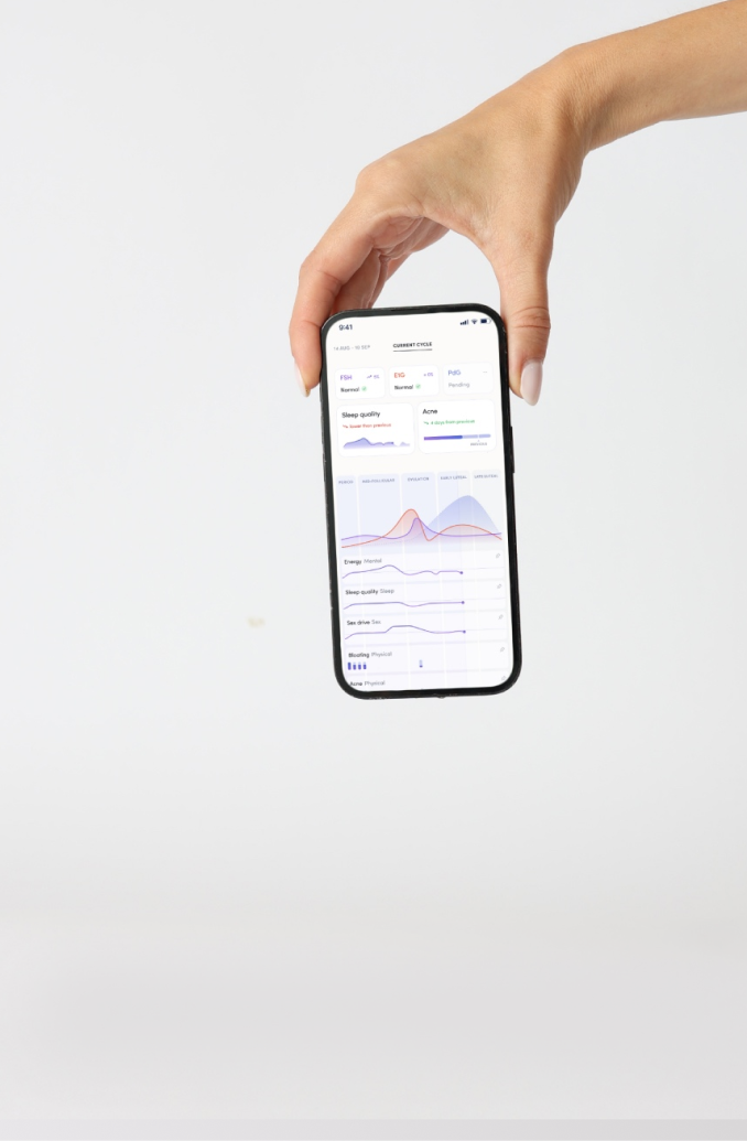 Log your symptoms, test your hormone levels, monitor your cycles, and periods, and get individual recommendations for managing your symptoms, reducing stress and improving your overall health.
